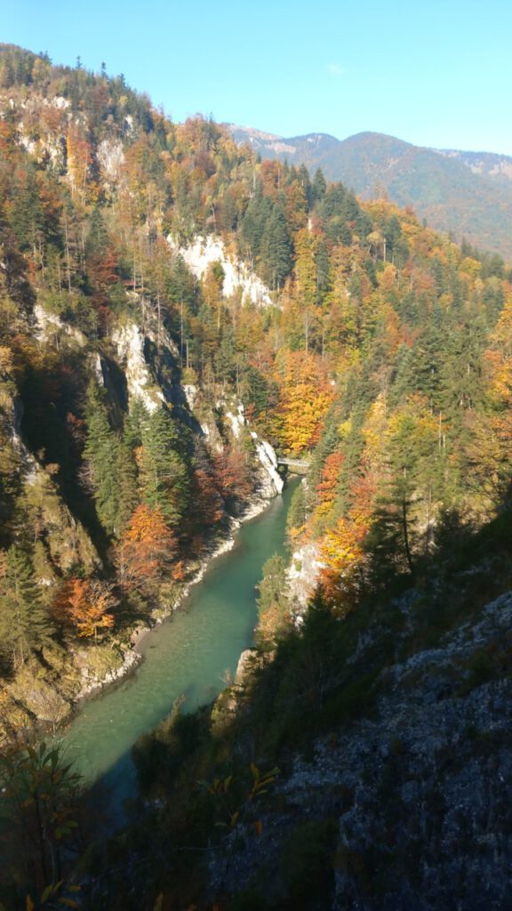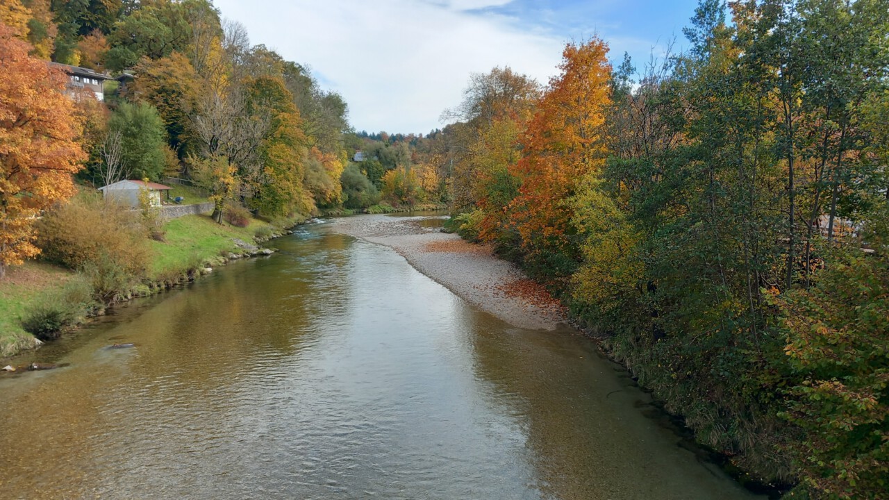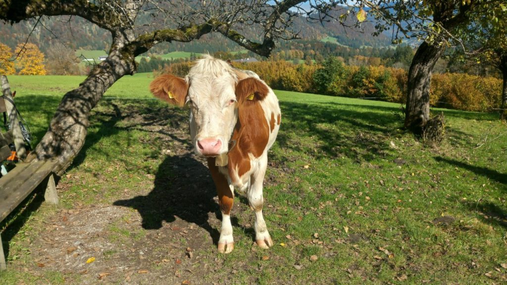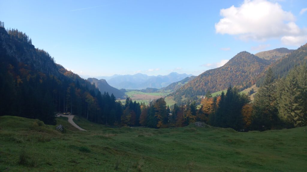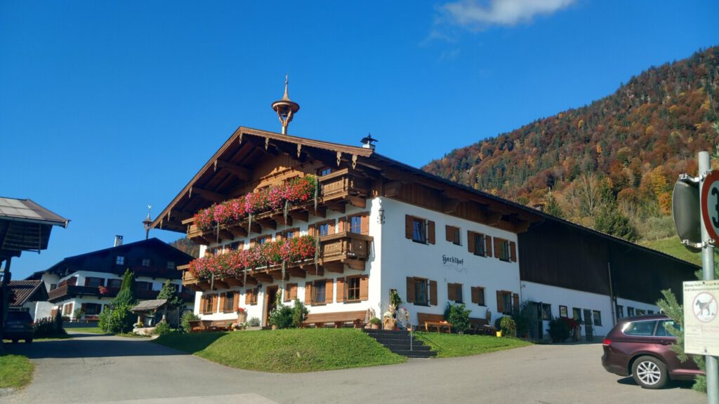 … auf die Ottenalm. Wo ich allerdings schnell wieder umgedreht bin, weil man da als Radfahrer vom Wirt nicht gern gesehen wird. Sogar das Schieben des Rades auf bestimmten Wegen, sie sind angeblich videoüberwacht, wird zur Anzeige gebracht. Radfahrer berichten, dass der Wirt schon mal gedroht hat die Reifen zu zerstechen. Irgendwie krass, habe ich so noch nirgends gesehen! Aber was soll’s, dann eben keine Einkehr beim unfreundlichen Wirt und wieder runter zum Walchsee und weiter nach Kössen. Eine wunderbare Wegstrecke, jetzt im Herbst besonders schön. Ja, und dann der Hit beim MPREIS: Sonderaktion 2 Leberkaskäsesemmeln und Apfelsaftschorle für 4,98 €, da kann man nicht meckern. Gut gestärkt, eine sonnige Bank zur Pause findet sich immer, bin ich hoch nach Reit im Winkl zu Kaffee und Kuchen beim Kotter im Rathaus. Man gönnt sich ja sonst nichts. In der Sonne sitzen mit einem Kaffee, einfach gut fürs Gemüt! Der letzte Anstieg dann zum Maserer Pass und ohne Anstrengung runter nach Hause. Alles in allem eine wunderbare, etwas längere Tagestour mit 56 km und 870 hm. Einfach dahinradeln, nichts denken und die Landschaft genießen, das war mein Plan und der hat sich voll erfüllt!