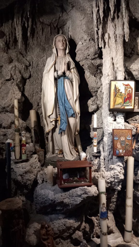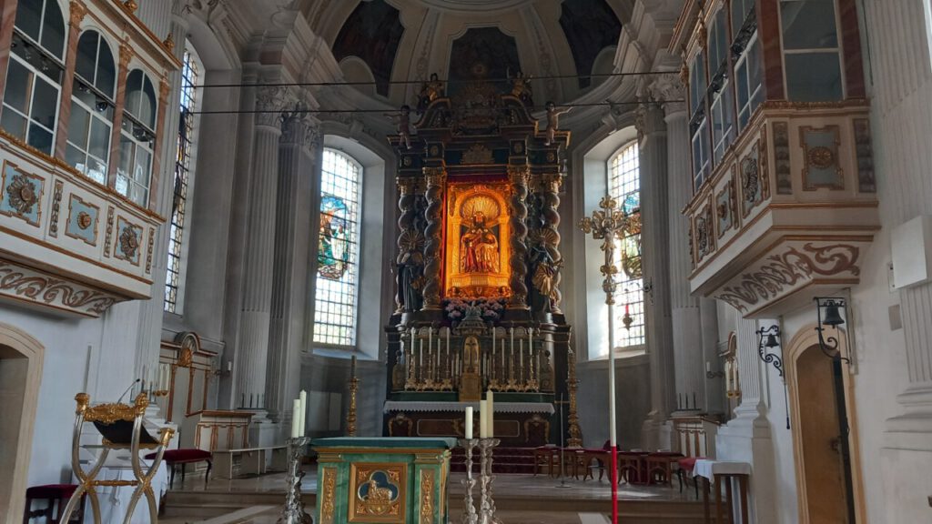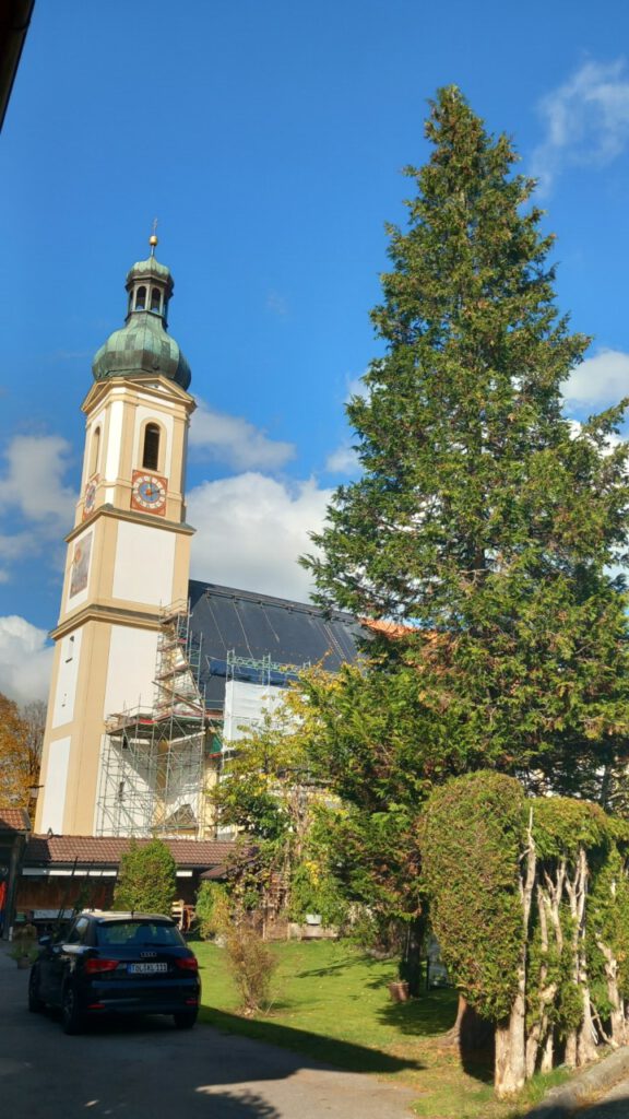 … noch haben wir das Grab von Bärbels Eltern in Murnau. Inzwischen pflegen wir das Grab selbst und verbinden das mit einem schönen Ausflug. Nachdem wir immer mal wieder auch beim McDonald’s einkehren, ist es inzwischen perfekt, dass es dort Ladestationen von EWE Go gibt, wo das Schnellladen mit der App “nur” 52 Ct kostet. Nach einer kurzen Pause war unser ZOE schon wieder bei 80 % und kann damit bei den jetzigen Temperaturen ca. 250 km fahren. Die Laderei an Ladestationen ist inzwischen wirklich überhaupt kein Problem mehr. Der Schwerpunkt des Ladens sollte allerdings zu Hause sein, am Besten mit Solarstrom. Nur so ist das Elektrofahren wirklich günstig. Auf der Heimfahrt haben wir uns noch Lenggries gegönnt, ein netter Ort, natürlich auch mit schöner Kirche und Marienkapelle.