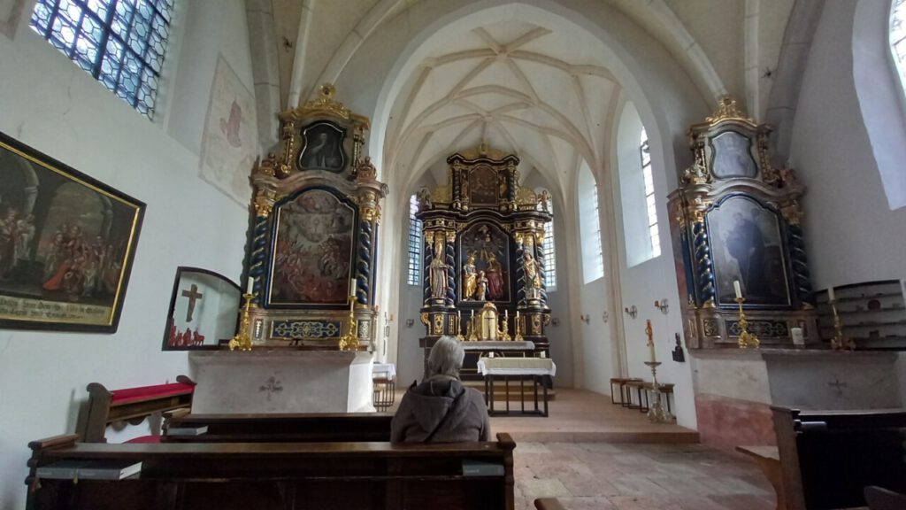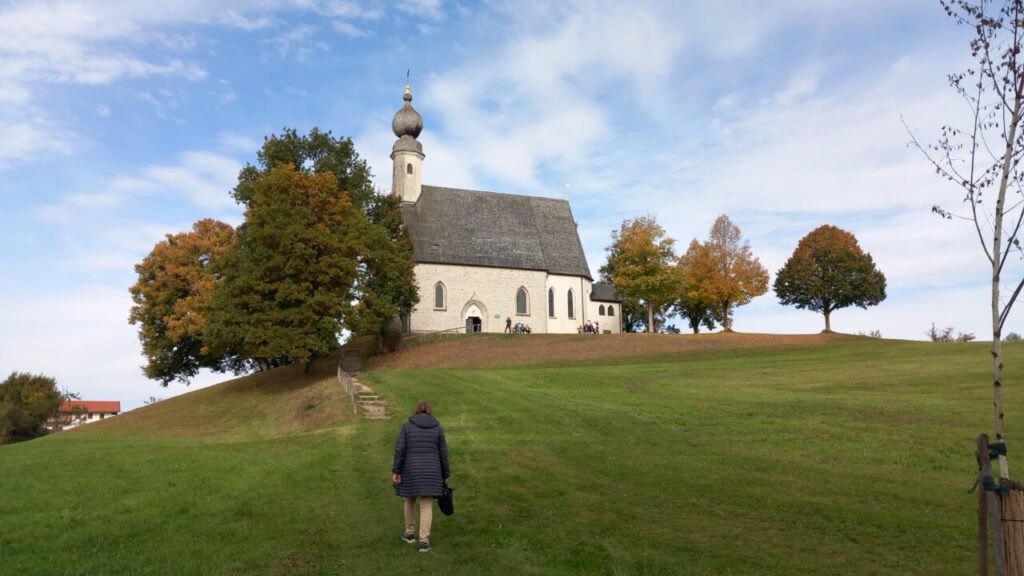 … zum Ettendorfer Kircherl St. Vitus und Anna oberhalb von Traunstein. Ein wirklich ganz toller Fleck mit herrlicher Aussicht auf Traunstein und die dahinter liegenden Berge. Wir sind vom Wanderparkplatz Sparzer Graben aus gelaufen, erst hoch zur Sparzer Kapelle und dann runter, rüber und wieder hoch zum Ettendorfer Kircherl, das macht ca. 1 Stunde hin und zurück, ein sehr schöner Weg, großenteils an der Traun entlang. Einkehr heute beim Wochinger mit einer guten Brotzeit und Zwickl Bier (die Bärbl hatte alkoholfrei und ist gefahren), was will man mehr?