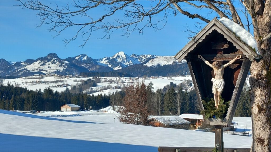 … Wintertage! Schnee, nicht zu viel, kalt und Sonne, eine perfekte Mischung! Heute Spaziergang zur Mitterseehütte, sehr zu empfehlen, auch wenn das Langlaufen mal noch nicht geht. Dafür gibt es tolle Eisflächen zum Schlittschuhlaufen und Eisstockschießen. Erst Brotzeit in der Mitterseehütte, dann, wenn die Sonne dort weggeht, zum Kaffee und super Kuchen ins Blindaustüberl, jeweils mit durch Schnee laufen und Vitamin D tanken kombiniert, besser geht nicht!