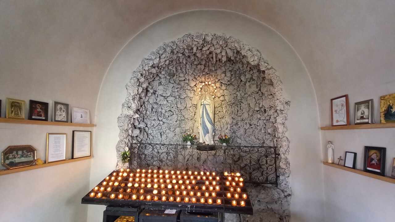 Die nach Brand wieder renovierte Lourdes-Kapelle, sehr schön geworden!