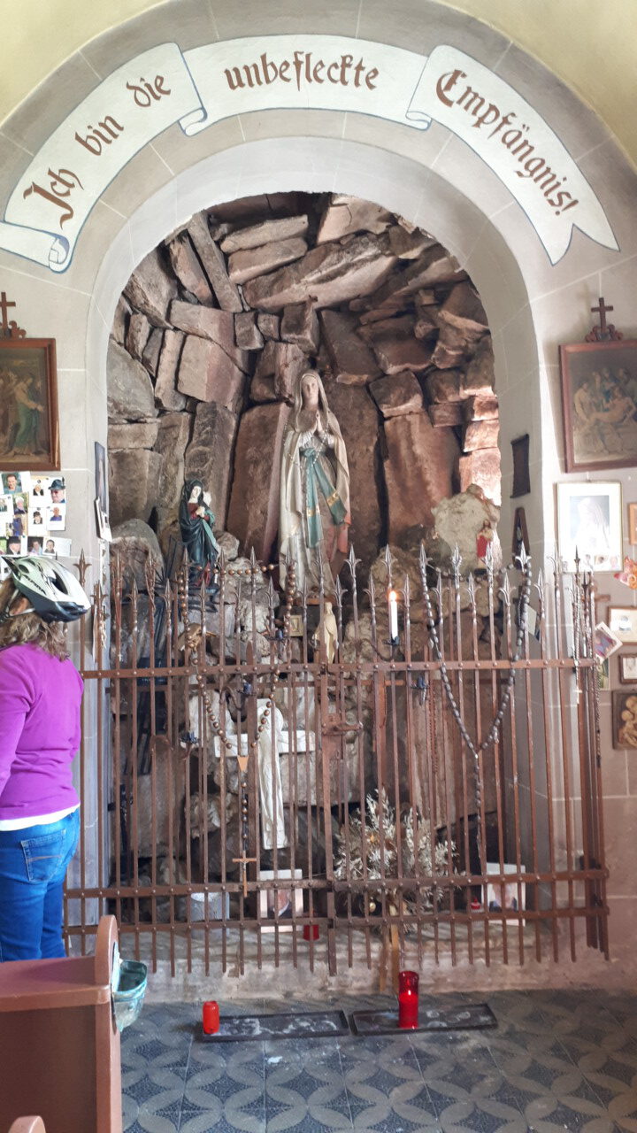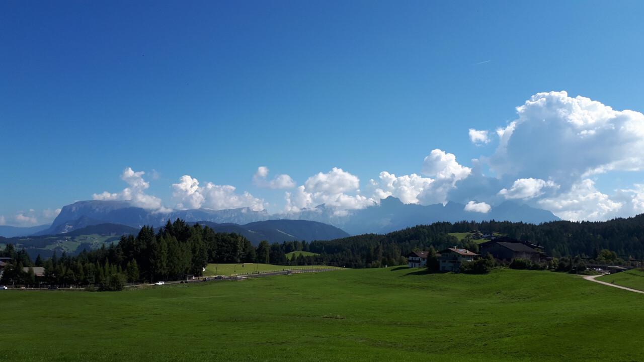 … wo ist das? Deutschnofen liegt auf einer Hochebene südöstlich von Bozen, umgeben von den Bergmassiven des Schlern, Rosengarten und Latemar im Osten und des Zanggen, Schwarz- und Weißhorns im Süden. Der Blick nach Westen fällt auf das Mendelgebirge, dort wo wir unser Zimmer hatten. Anfang der 2000er Jahre bin ich mit meinen Mountainbikekameraden bei einem Alpencross hier vorbei gekommen. Diese Erinnerung hat mich dazu gebracht diesen so schön gelegenen Ort noch einmal zu besuchen. Das Wetter war nicht ganz optimal, die Bergspitzen waren teilweise versteckt, dennoch haben wir eine nette Runde mit den Rädern gedreht und dabei auch noch eine gut zu erreichende Alm gefunden. Und weil eine schöne Kirche immer dabei sein muss haben wir uns noch die Wallfahrtskirche Maria Weißenstein angeschaut.
