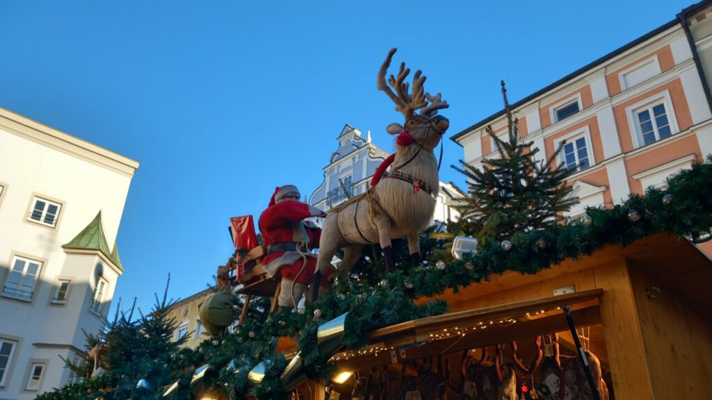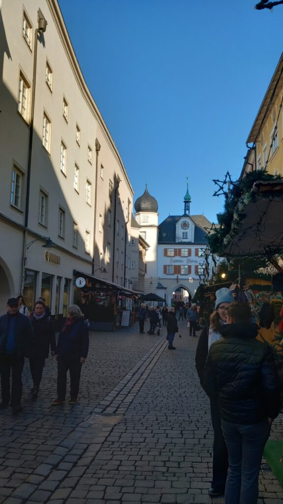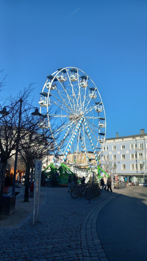 … auch immer einen Besuch wert! Das unglaublich schöne Wetter hat uns gelockt in der Innenstadt zu bummeln, noch dazu wenn Christkindlmarkt ist. Auch Rosenheim tut alles, um den Besuch des Christkindlmarktes zu einem besonderen Erlebnis werden zu lassen. Heute war Familientag, da gab es einige preiswerte Angebote zusätzlich. Wir haben uns eine Fahrt auf dem Riesenrad gegönnt, der Ausblick war grandios, die Berge, besonders der Rosenheimer Hausberg Hochries, zum Greifen nah. Alles in allem ein wunderschöner Nachmittag, Rosenheim vor Weihnachten werden wir uns merken!