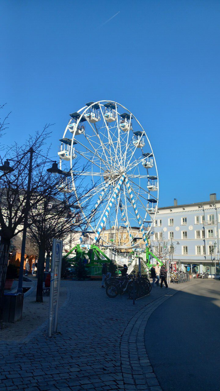 … auch immer einen Besuch wert! Das unglaublich schöne Wetter hat uns gelockt in der Innenstadt zu bummeln, noch dazu wenn Christkindlmarkt ist. Auch Rosenheim tut alles, um den Besuch des Christkindlmarktes zu einem besonderen Erlebnis werden zu lassen. Heute war Familientag, da gab es einige preiswerte Angebote zusätzlich. Wir haben uns eine Fahrt auf dem Riesenrad gegönnt, der Ausblick war grandios, die Berge, besonders der Rosenheimer Hausberg Hochries, zum Greifen nah. Alles in allem ein wunderschöner Nachmittag, Rosenheim vor Weihnachten werden wir uns merken!