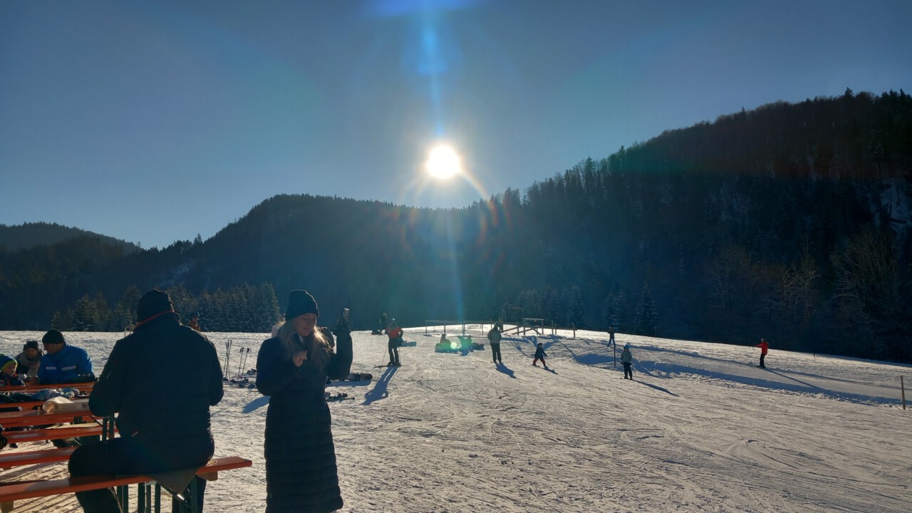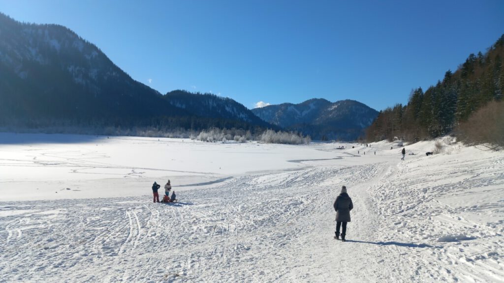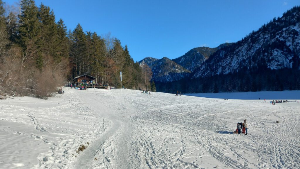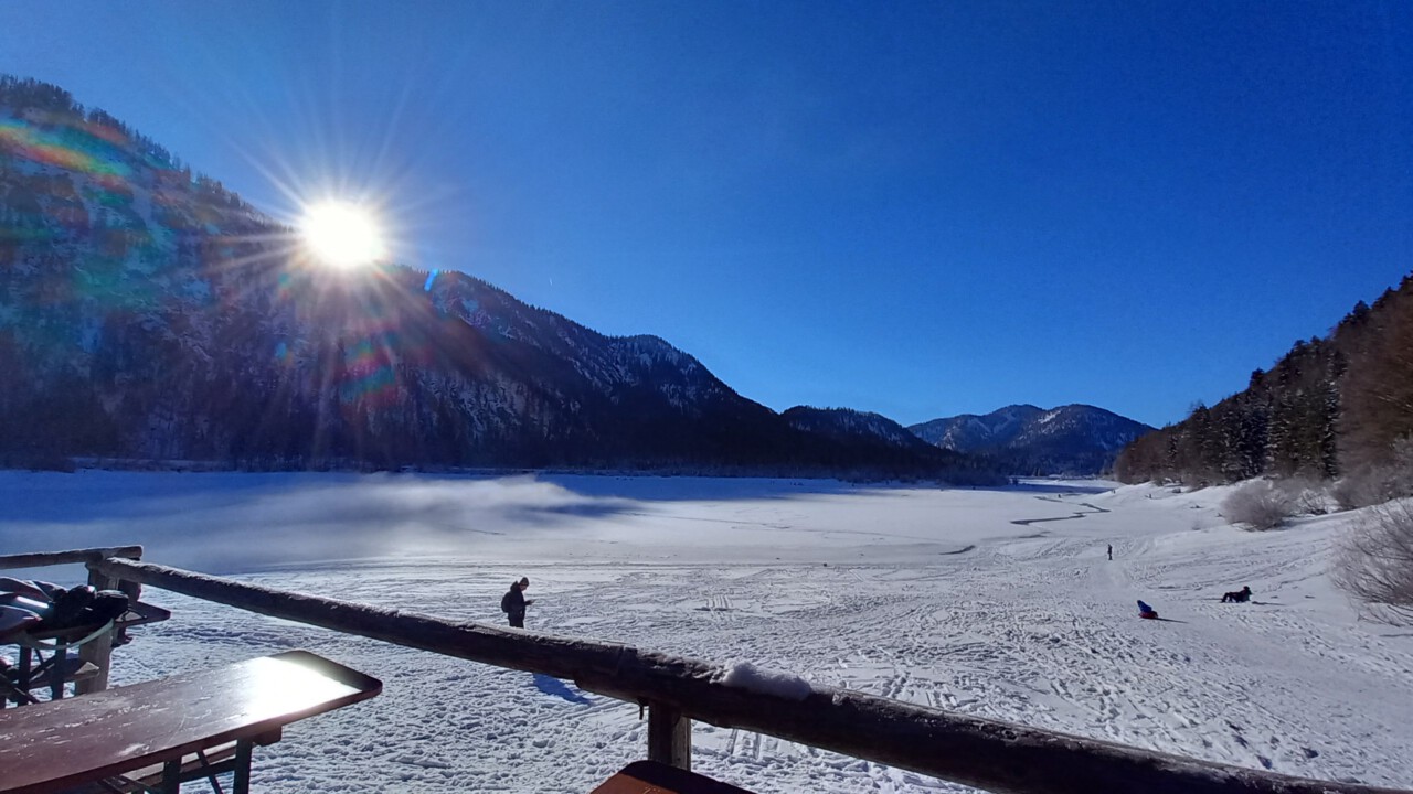 … Wintertage! Schnee, nicht zu viel, kalt und Sonne, eine perfekte Mischung! Heute Spaziergang zur Mitterseehütte, sehr zu empfehlen, auch wenn das Langlaufen mal noch nicht geht. Dafür gibt es tolle Eisflächen zum Schlittschuhlaufen und Eisstockschießen. Erst Brotzeit in der Mitterseehütte, dann, wenn die Sonne dort weggeht, zum Kaffee und super Kuchen ins Blindaustüberl, jeweils mit durch Schnee laufen und Vitamin D tanken kombiniert, besser geht nicht!